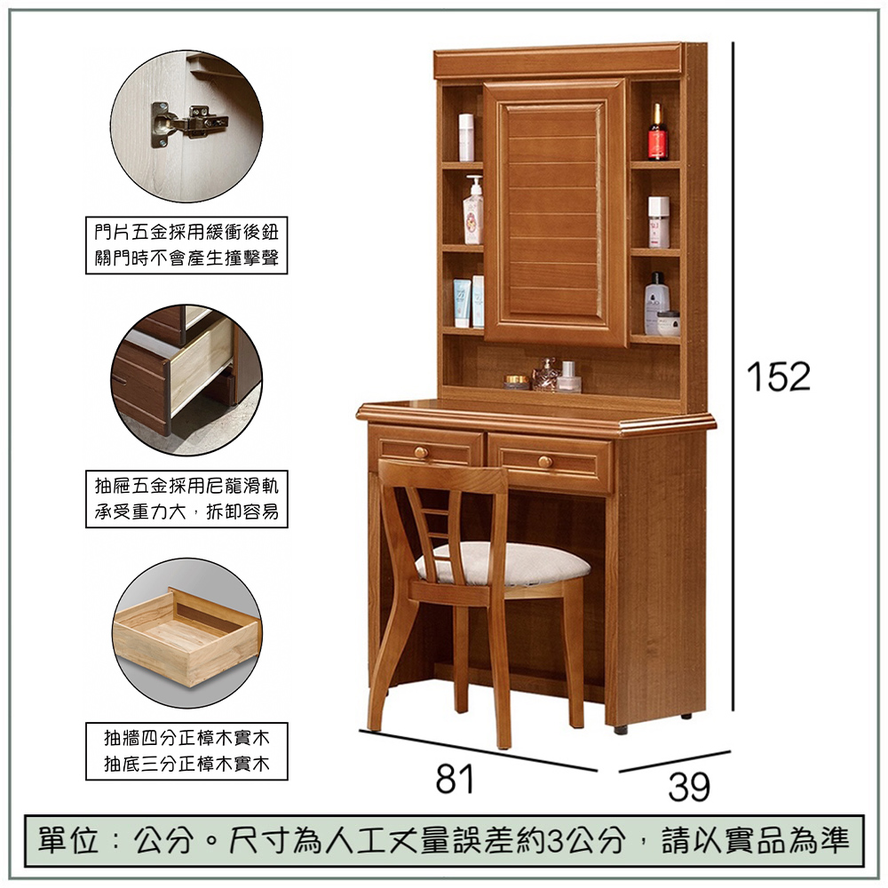 -商品含化妝椅,為三件組,專人現場組裝定位