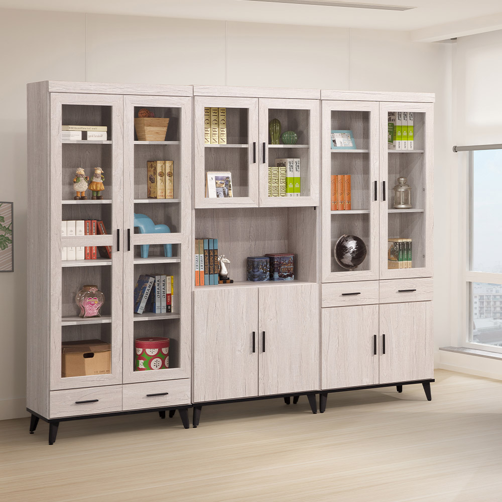 多樣化收納空間:豐富的儲物配置,上層玻璃門展示櫃,是展示收藏書籍或收藏品的最佳區域;中間寬敞的開放空間,方便隨手取放經常使用的物品,也可以搭配收納盒,增加靈活性;底部隱藏的收納空間可以放置不希望露出的物品,保持視覺上的整齊。