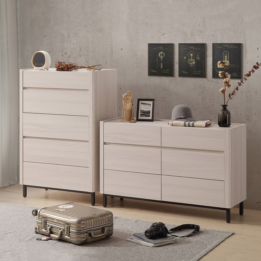 多功能設計:五抽設計,可分類整理衣物及小物件;平面空間可擺放燈具、相框或裝飾物,增添個人風格。