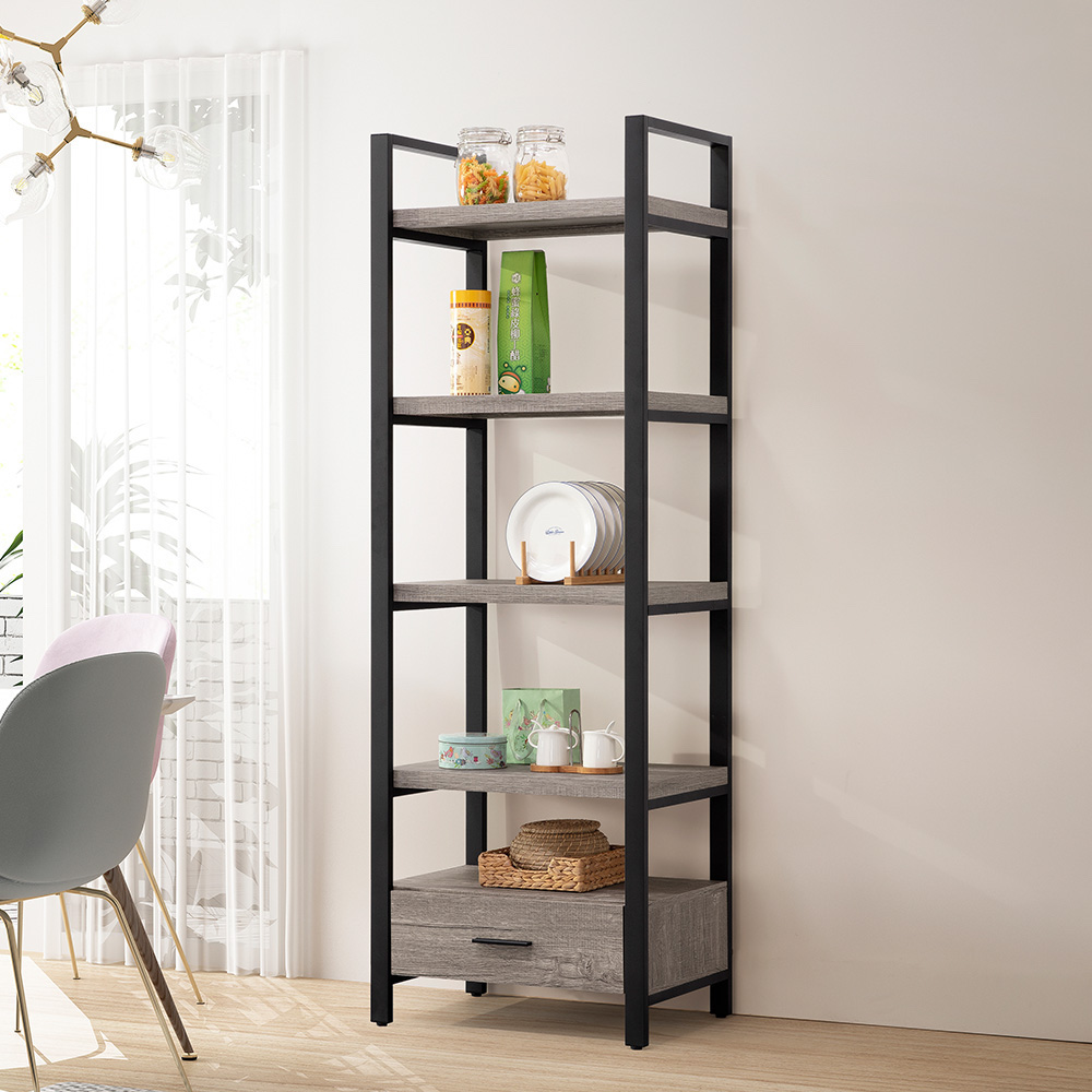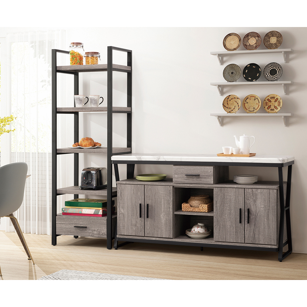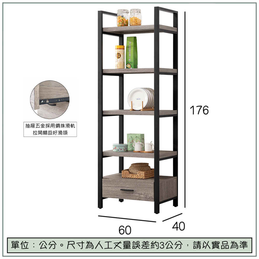 收納空間:窄版高挑的結構,有效利用牆面垂直空間;四層開放式層板適合擺放咖啡器具、餐具或書籍;底部抽屜可以存放私人物品或雜物,收納更有彈性。