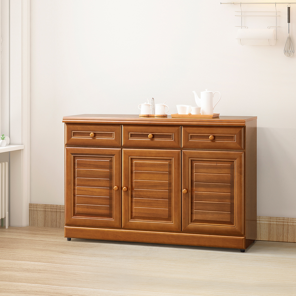 收納功能:上方配置三個獨立抽屜,能將餐具與零碎小物分類存放;下方櫃內設置可調式隔板,無論大型鍋具、餐盤組或瓶裝飲品都能輕鬆歸位,讓每一次的拿取過程更加流暢順手。