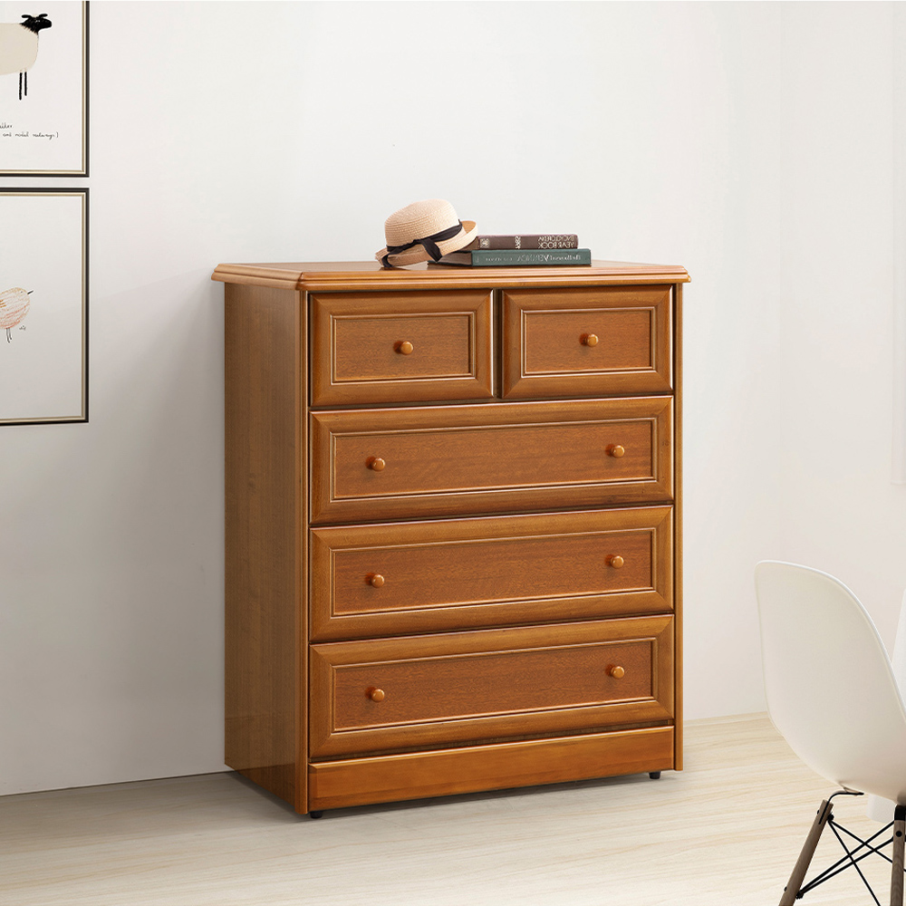 收納功能:上方雙抽屜方便分類襪子、飾品等生活小物,下方三層寬闊大抽屜則提供充足容量,能輕鬆平整收納四季衣物或大件織品;抽屜櫃頂埔檯面還能化身為隨心妝點空間的展示平台。