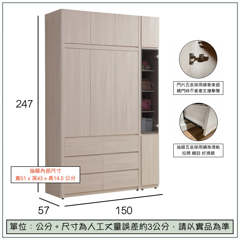 『生活中的美好,從井然有序開始。我們將機能性與美學完美融合,透過多樣化的分區設計,讓每一件衣物、每一件物品都能找到專屬的位置,尋找衣物不再浪費時間,讓衣櫃成為生活中的得力助手』