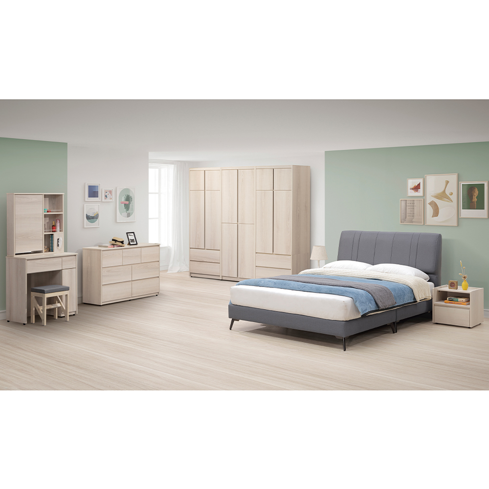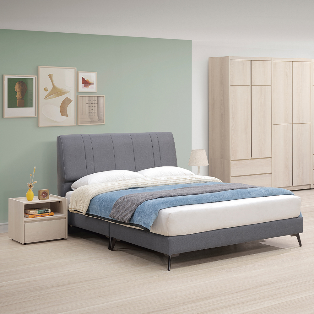 床片設計:低調霧灰皮面包覆高密度泡棉,支撐與柔軟兼具;貓抓皮革細緻耐磨,直線車縫設計,俐落線條更顯層次感。『柔軟包覆的床頭靠背,讓每一次的倚靠都像被輕輕擁抱。無論早晨醒來或夜晚休憩,都是最放鬆的開始與結束』