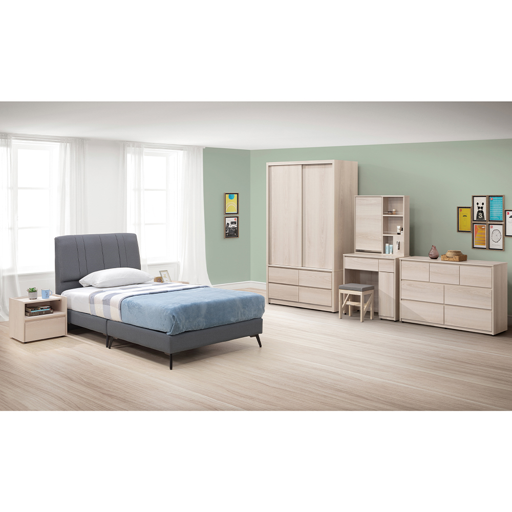 床組設計:以極簡線條構築視覺平衡;霧灰皮面細膩包覆,支撐與柔軟兼具;金屬床腳穩固支撐,床底離地高,方便清潔與收納;無床邊突起物,睡眠空間更安全舒適。『以極簡設計全是舒眠品味。結合柔軟與穩定,讓您在靜謐夜色中,享受最安心的休憩時光』