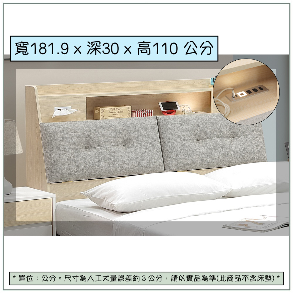 收納功能::床頭靠枕掀開,裡面隱藏式置物空間,可收納大型寢具;中間的開放平台結合插座和夜燈,讓手機充電與睡前小物有了專屬的歸宿。左右兩側還貼心設計了隱藏式面紙孔,將日常瑣碎轉化為有序的機能,打造整潔又有溫度的睡眠角落。