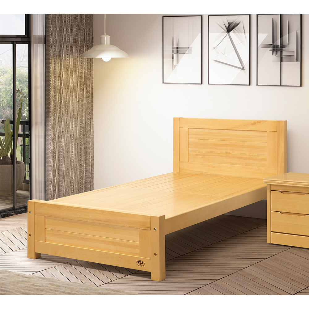 外觀設計:溫暖的原木色調,細膩勾勒出自然的木質紋理;經典橫向線條床頭與床尾相互呼應、層次分明;厚實穩固的結構帶來安心支撐,搭配通透的床底空間,不僅讓視覺輕盈明亮,更賦予空間靈活的收納可能,無論是放置收納盒或掃地機器人的日常清潔,都能優雅穿梭。