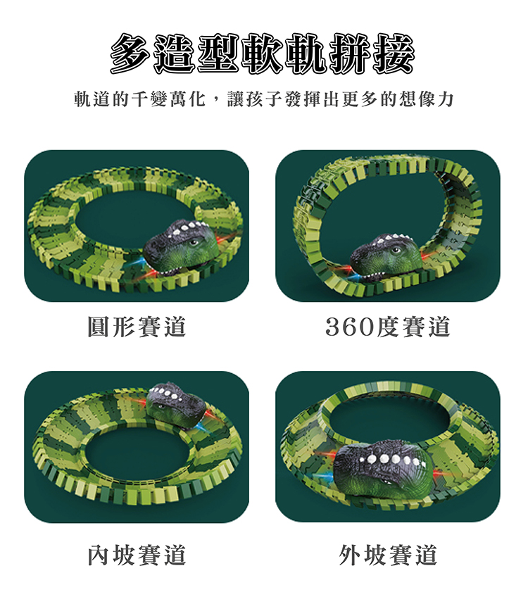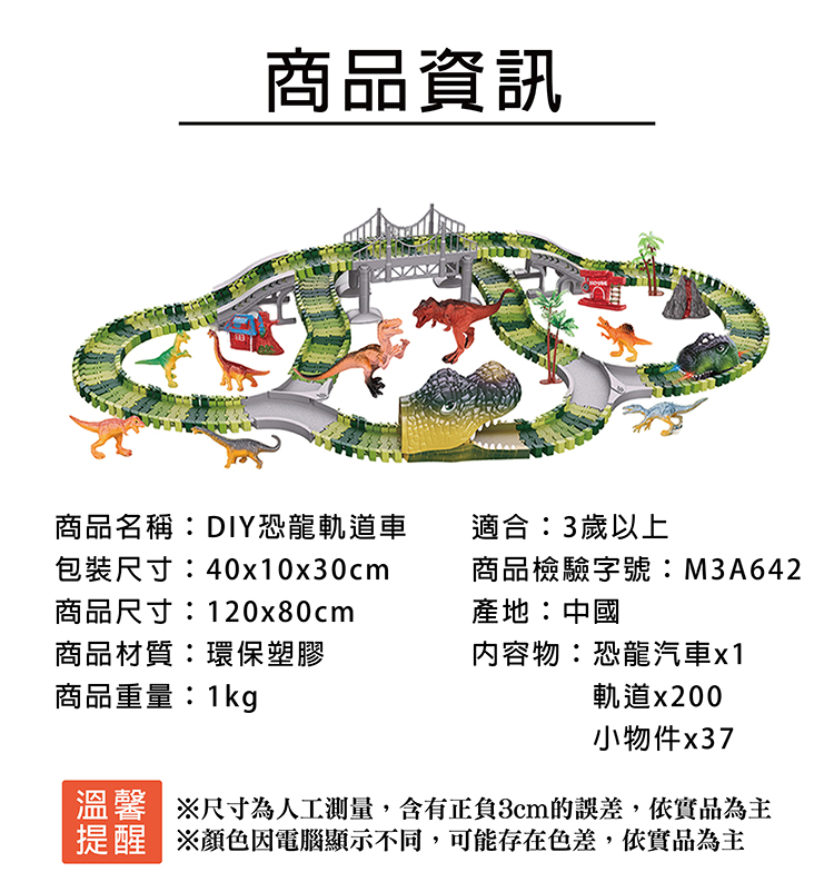 內容物:恐龍汽車x1、軌道x200、小物件x37