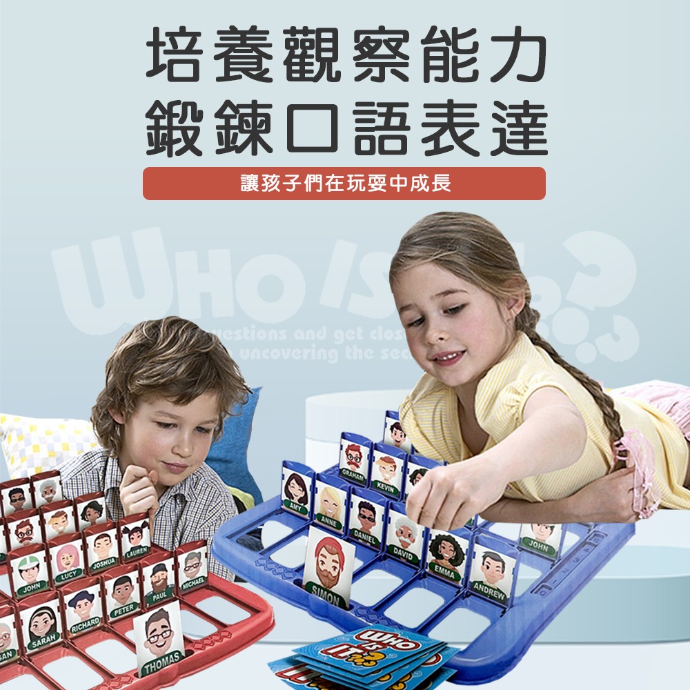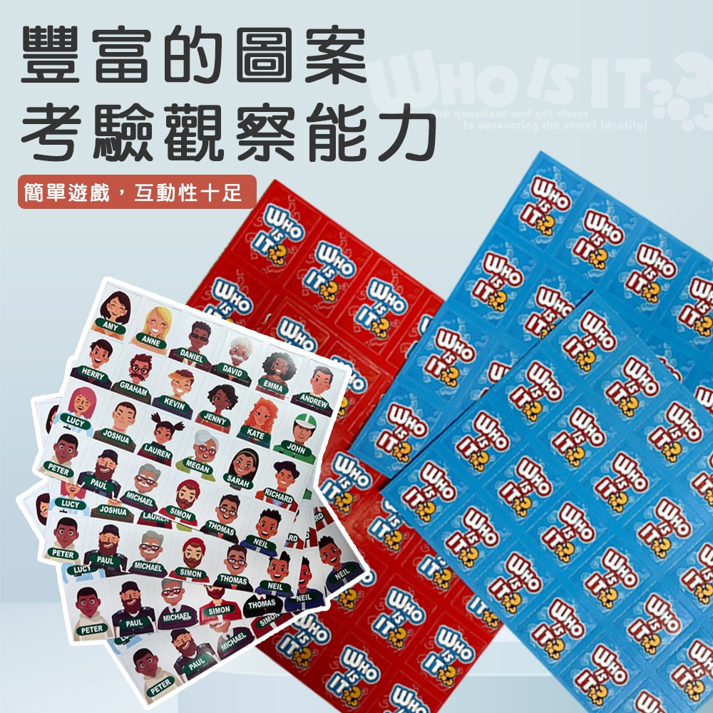 5.繼續輪流向對方提問,直到其中一方猜中對方卡片的人物,並叫出名字,即可獲勝一局。