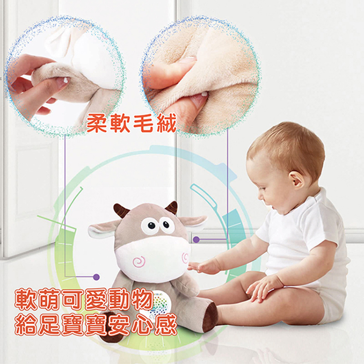 多種聲音選擇這款嬰兒安撫機玩具可播放各種舒緩的聲音和旋律、白噪聲和自然聲音,有助於激發寶寶的聽力和聽力技能。