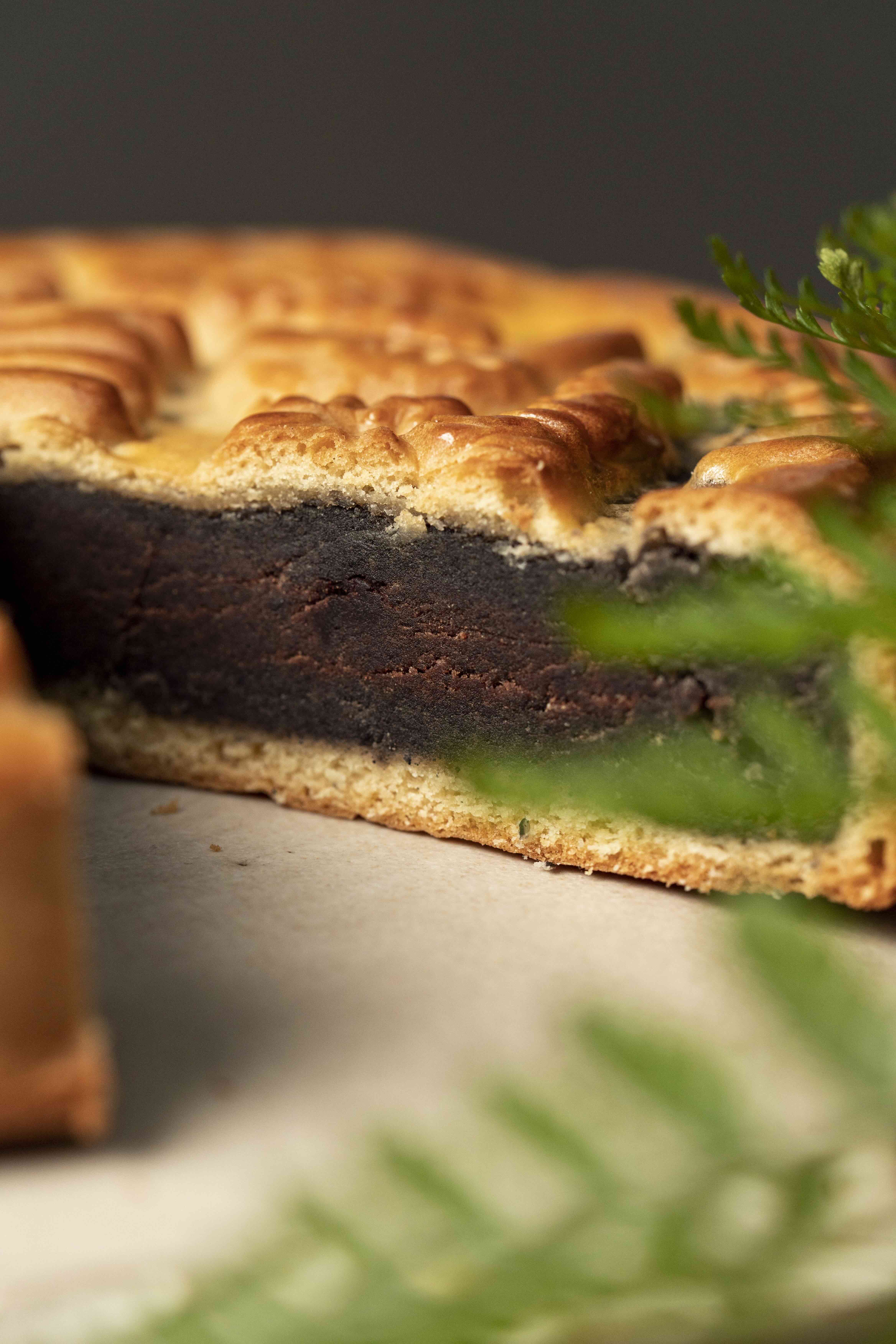 黑芝麻巧克力創新搭配的黑芝麻與巧克力,苦甜交錯,香氣濃郁且細膩,加入現代風味的巧思,餅皮酥香中帶芝麻的天然香氣,帶來獨特的風味體驗,特別適合追求新鮮口感者。緣起於傳統,落地於當代風味。捨去繁複裝飾,以溫潤紙質與低飽和色調,展現簡約素雅的美感,並以繩結象徵人與人之間緊密的情感聯繫,承載祝福與美好。不只是喜餅,更是每個值得慶賀時刻的圓滿見證。內裡餅皮酥而不膩,餡料飽滿細膩,口感濃郁卻不過度甜膩,符合現代人對美味與健康的追求。從傳統婚嫁到家族團聚,或是節慶賀禮,「囍事圓滿」讓經典大餅走進生活,傳遞幸福,流轉美好。