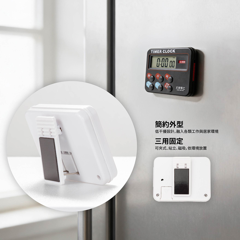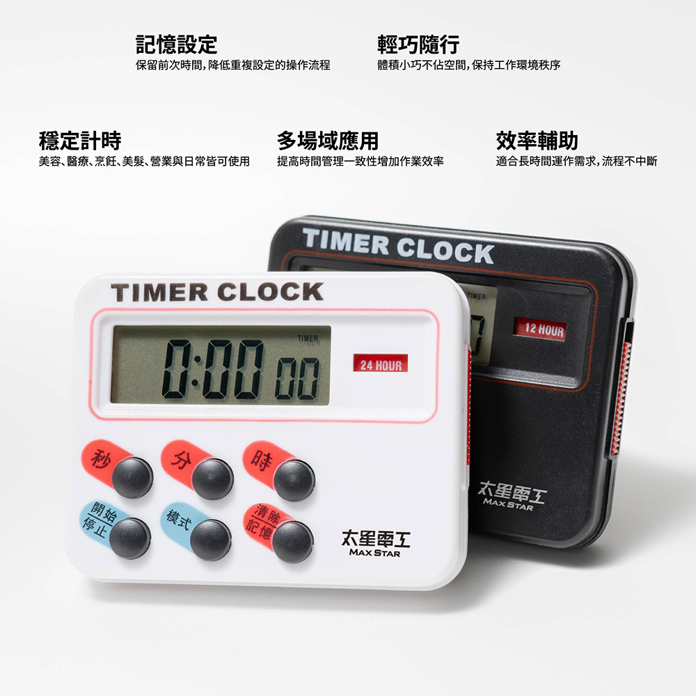 1.具有時間顯示、正倒數計時,簡易操作。