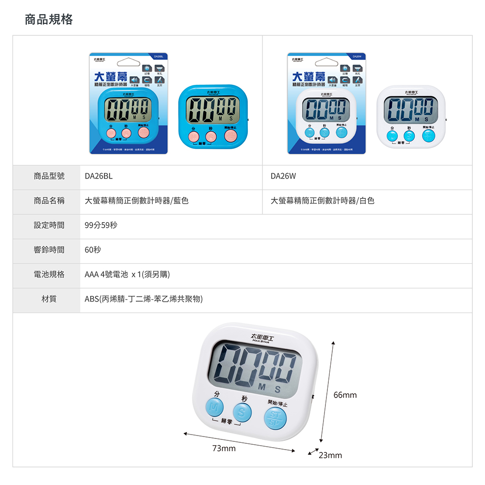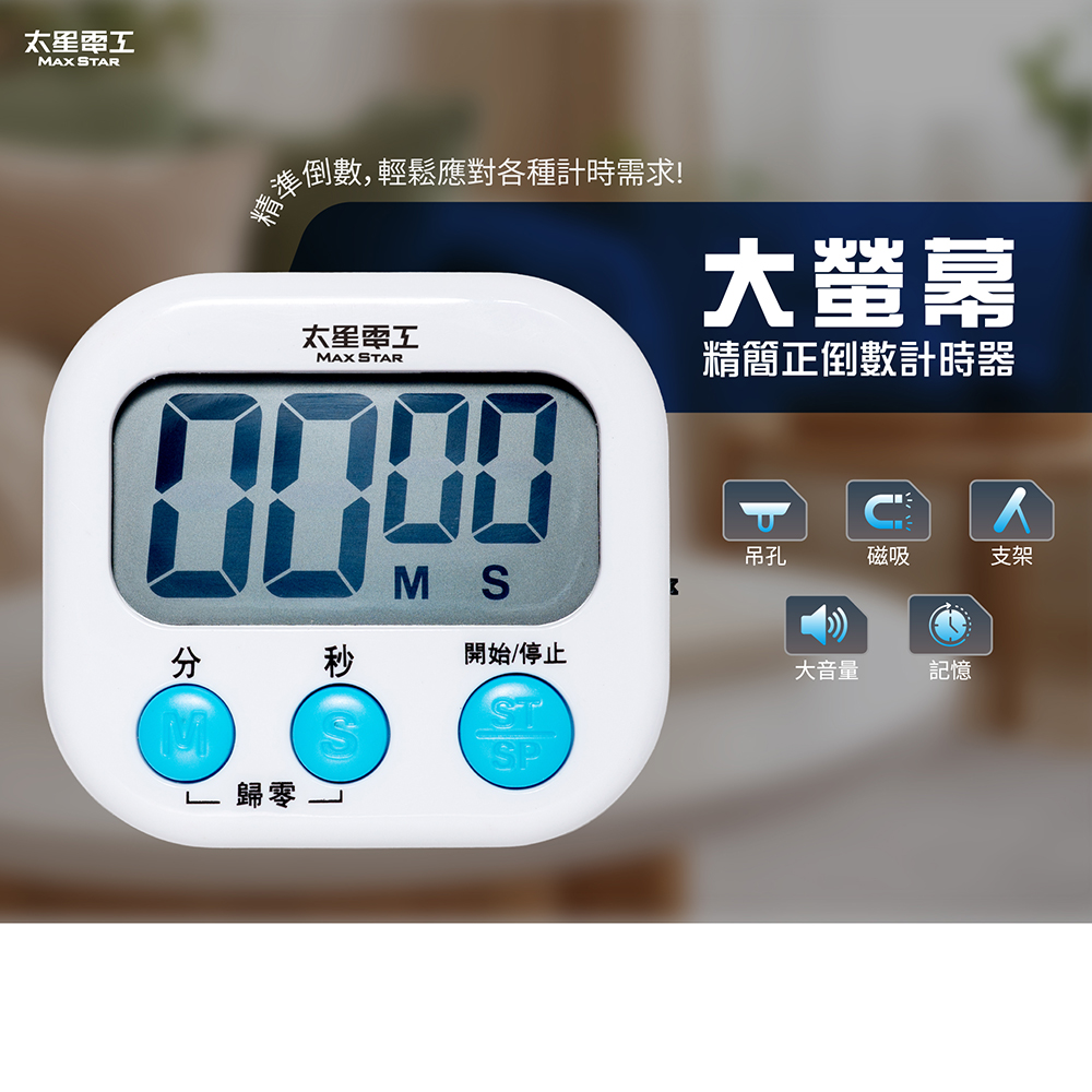 1.簡易大按鍵,正倒數計時,簡易操作。