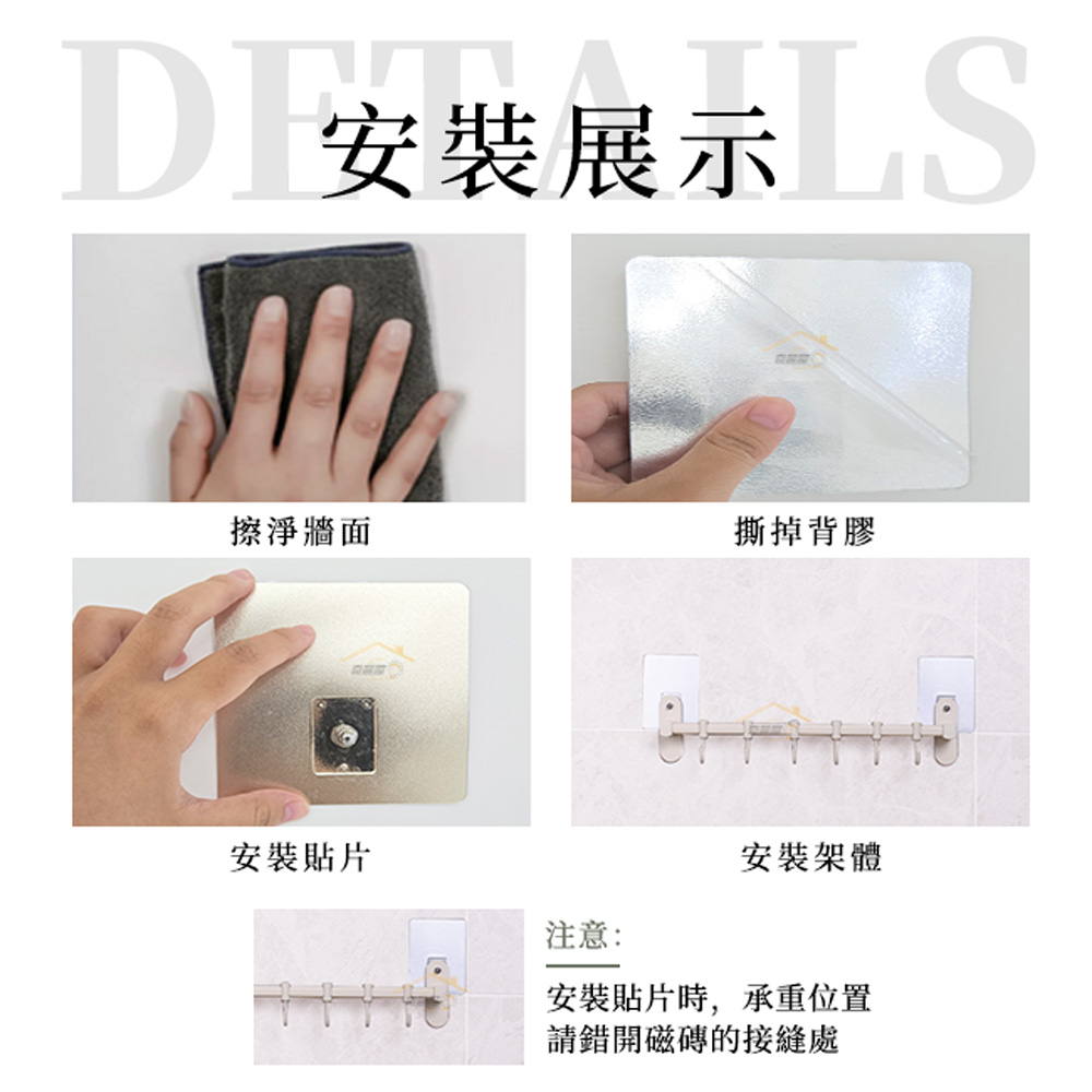 時尚簡約,隨手掛置,靈活取用提升格調移動掛鉤設計,可依吊掛物品調整貼片防水、防油、防塵,牢牢貼合不鬆動免釘、免鑽、可重複使用,無痕多層膠