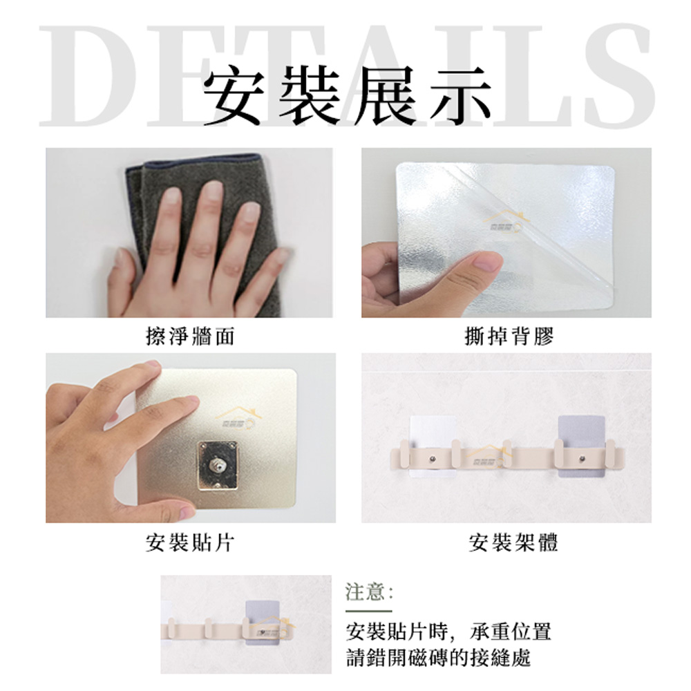 ❌以下牆面禁止使用:❌粉刷牆面、壁紙、毛玻璃、油漆牆面、壁癌噴蠟、水垢油汙❌磁磚特殊造型❌(菱格紋、波浪型、幾合圖形)皆不適用❌易碎貴重物品不建議使用