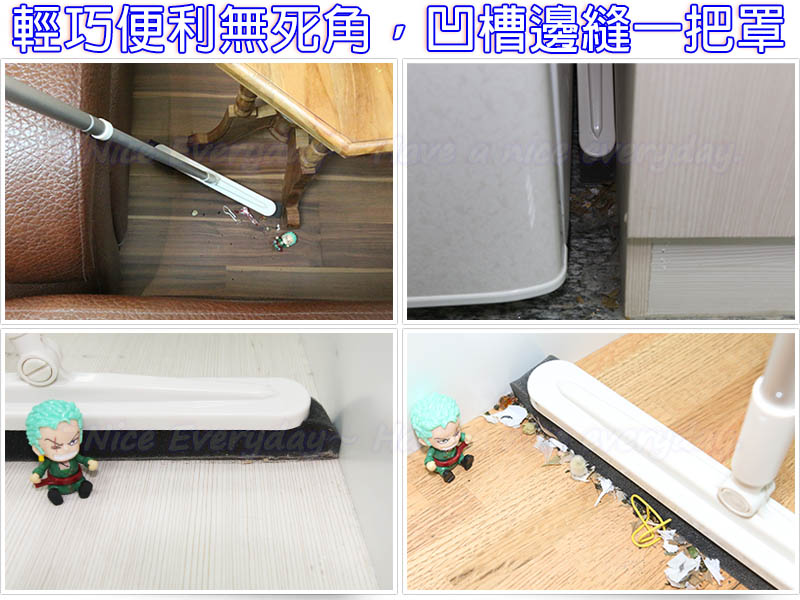 1.輕盈易掃,除塵力高達99%,毛髮落塵輕鬆掃。2.輕巧便利,清潔不費力。3.兩截式伸縮握桿可依個人需求調整至最佳使用長度。4.超靜電更具吸附力,細菌灰塵全部掃淨。5.絕不傷地板,更不塵揚的最好效果。6.可深入到桌椅、沙發下,清潔無死角。