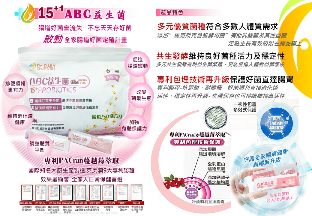 Dr.DAILY ABC15 益生菌 (60億)-蔓越莓口味 (50條/包)