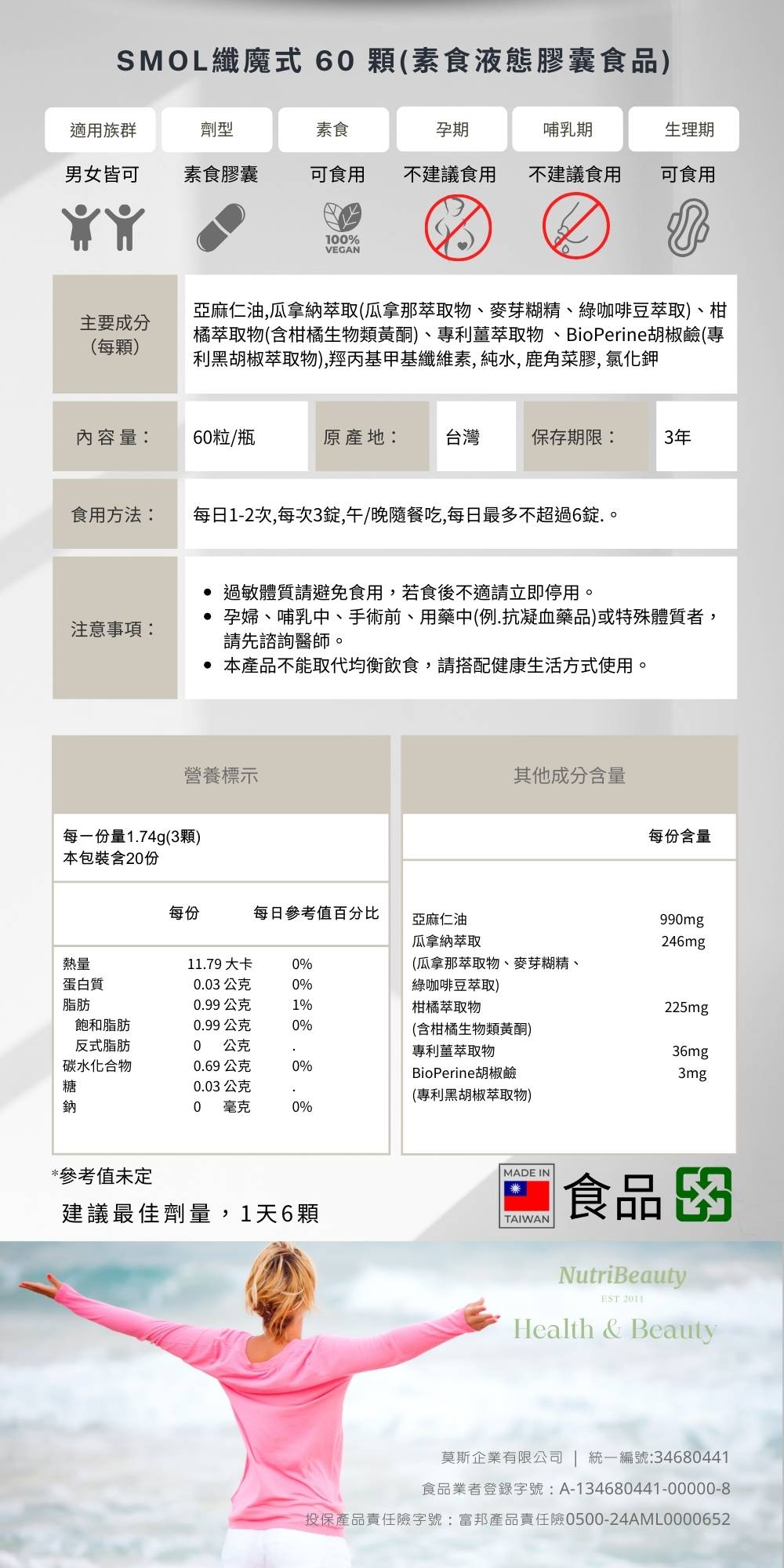 SMOL 纖魔式 PLUS 60顆(素食液態膠囊食品)