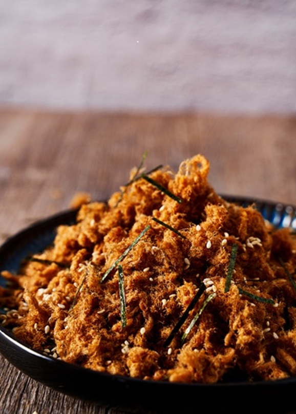 豬後腿肉(台灣)、大豆油、蔗糖、釀造醬油、芝麻、海苔、食鹽
