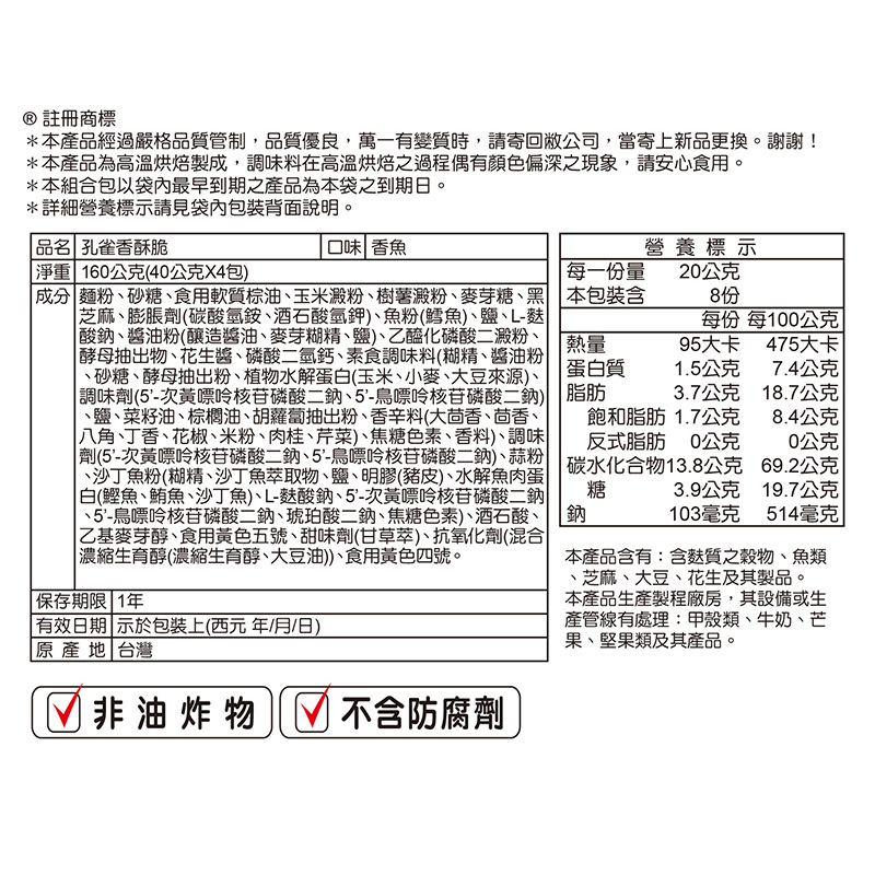 ◎Brand:孔雀 ◎Specifications: 160g克 x 1 x 1Bag袋