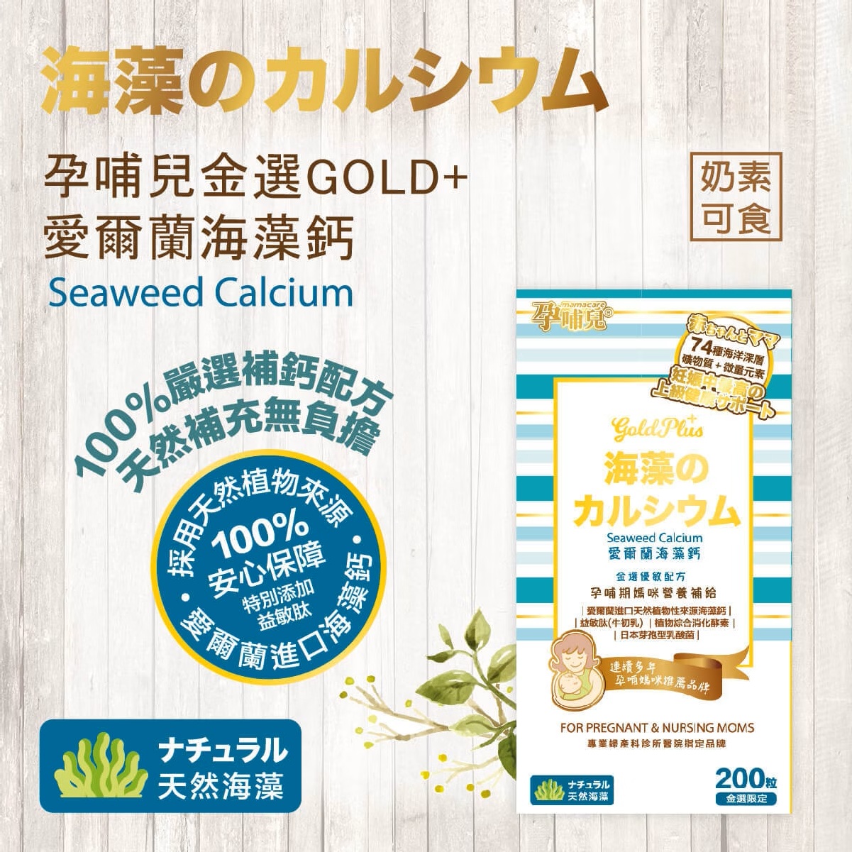 ★金選頂級系列『懷孕期、哺乳期孕婦專用海藻鈣』來自愛爾蘭無汙染專利海藻鈣,富含74種深層海洋微量元素,吸收率極高!金選配方更添加芽孢乳酸菌,幫助胎兒骨骼與牙齒穩健發育!◆74種海洋深層礦物質+微量元素◆愛爾蘭進口天然植物性來源海藻鈣◆益敏肽(牛初乳)低溫低壓 頂級黃金初乳專利益敏肽,採用16小時內精華初乳,低溫低壓製程,保留重要活性成分及營養素,孕哺媽咪體質好壯壯。◆植物綜合消化酵素由天然植物萃取酵素來源,能幫助各式營養素分解吸收,媽媽營養吸收好,寶貝頭好壯壯。◆日本芽孢型乳酸菌新一代多機能益生菌,具備多機能調整功效,維持消化道機能,幫助孕哺媽咪調整敏感體質,給寶貝優質成長環境。孕哺兒GOLD+優敏配方愛爾蘭海藻鈣,100%天然植物來源,天然海藻鈣含鈣量高達32-34%,並含74種深層海洋礦物質及微量元素,是孕哺媽咪最有效率鈣質補充來源之一。主要成分:天然植物性來源海藻鈣(愛爾蘭進口Aquamin)、益敏肽(牛初乳)、植物綜合消化酵素、日本芽孢型乳酸菌、酪蛋白磷酸生肽(CPP)本產品嚴選愛爾蘭進口專利級鈣源:愛爾蘭MARIGOT GROUP獨家專利,萃取自天然植物性海藻鈣,榮獲美國專利6,346,275、歐盟專利98900971-75。規格容量:劑型:膠囊。內容量:200粒。食用建議:◆孕前生育準備期:每次2粒,每日2次。◆懷孕期:毎次2粒,每日2次。◆哺乳期:毎次2粒,每日2次。◆成人:毎次2粒,每日2次。◆一日請勿超過6粒,多食無益。注意事項:◆奶素可食。◆本品含牛奶製品,不適合其過敏體質者食用。為保產品品質,請收納放置於陰涼乾燥處,避免陽光直射,開封後請於6個月內食用完畢。