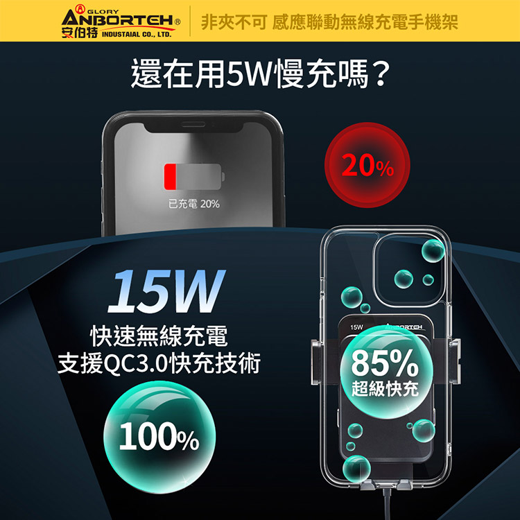 【安伯特】感應聯動無線充電手機架 (車用手機架 汽車手機架 車載手機架)