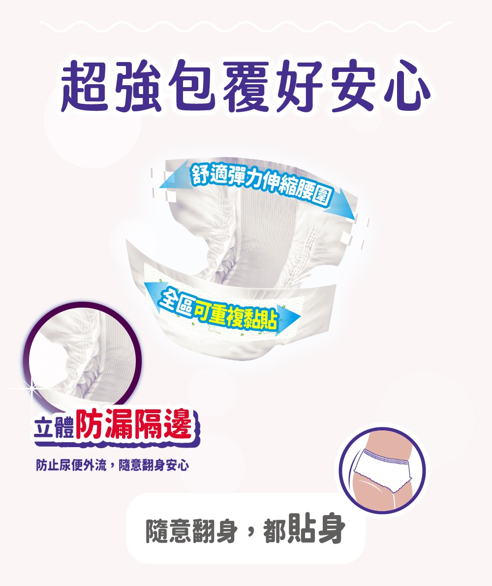 •添加獨特ZIOX配方,有效抑制金黃色葡萄球菌及大腸桿菌•彈性伸縮腰圍設計•隨意再貼區•立體防漏隔邊設計,安心不外漏•超柔軟表層,快速吸收,乾爽不回滲•超效導流紋•抑菌除臭高分子吸收層,有效鎖住臭味
