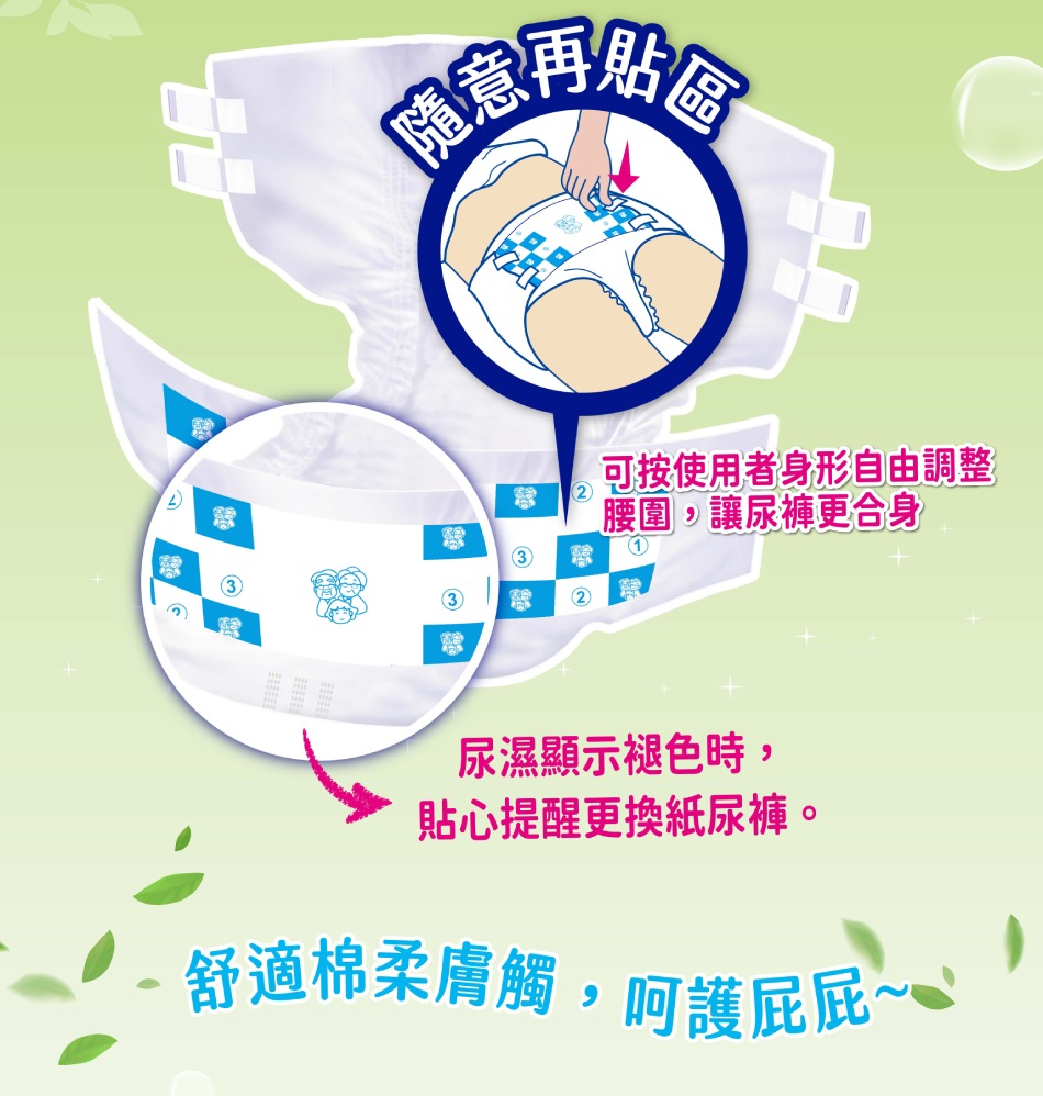 •獨家漢方本草精華抑菌配方,保護敏感肌膚,微微本草清香味,輕爽舒適一整天•抑菌除臭高分子吸收層,有效鎖臭•彈性再貼區,更適每一身形•超效導流紋•獨特尿溼顯示設計•超柔軟表層,快速吸收,乾爽不回滲