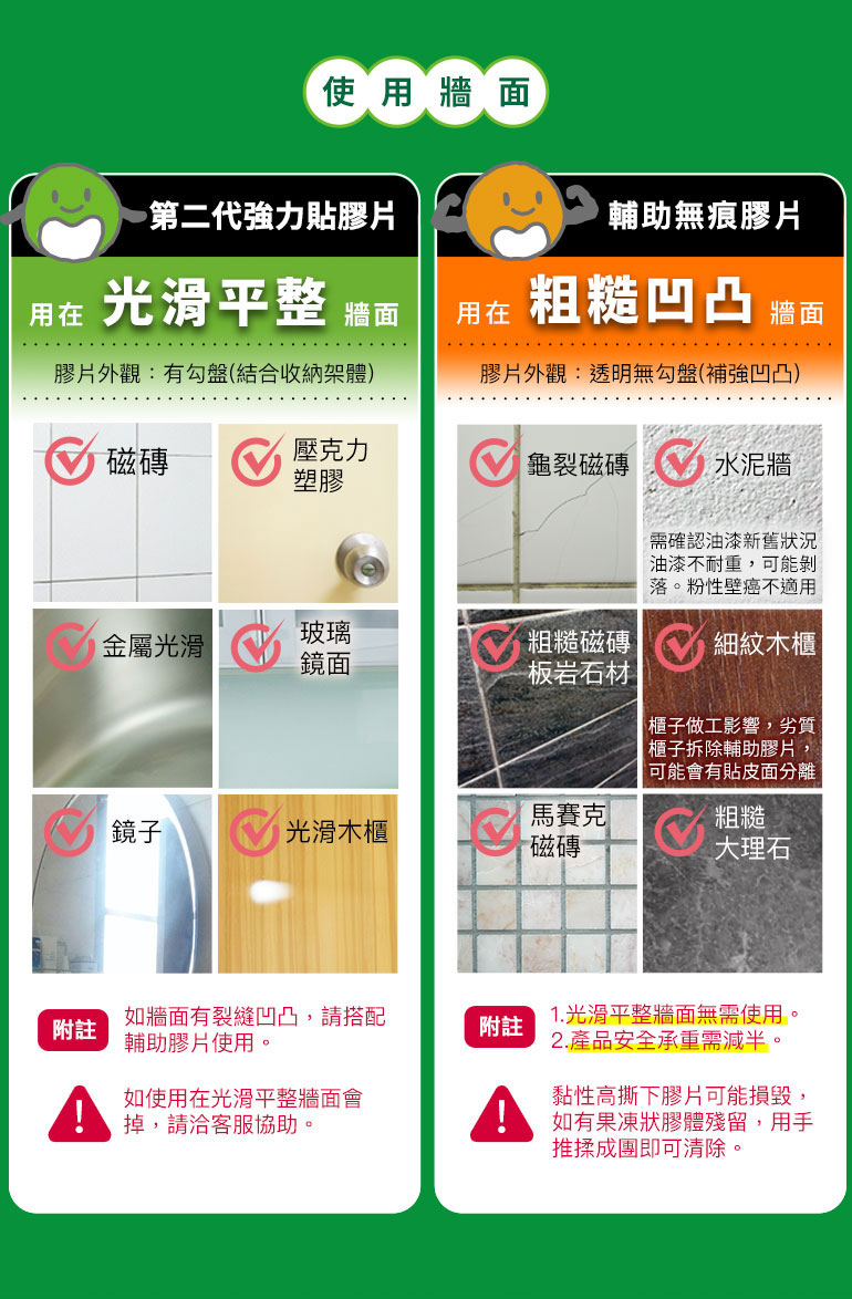 。光滑平整牆面,不挑材質(磁磚、玻璃、壓克力、不鏽鋼、貼皮櫃子、塑膠、鏡子)