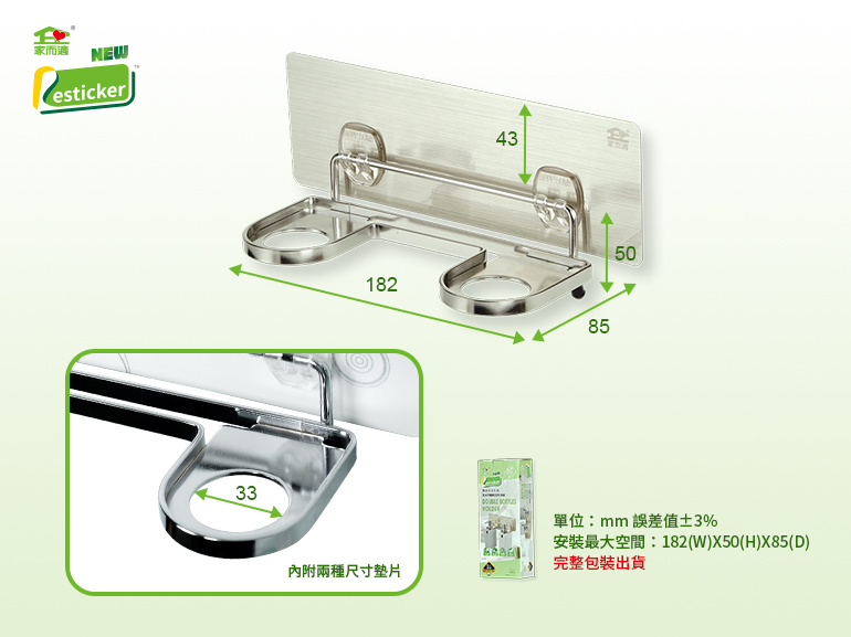 【商品名稱】家而適 304不鏽鋼雙瓶沐浴乳架