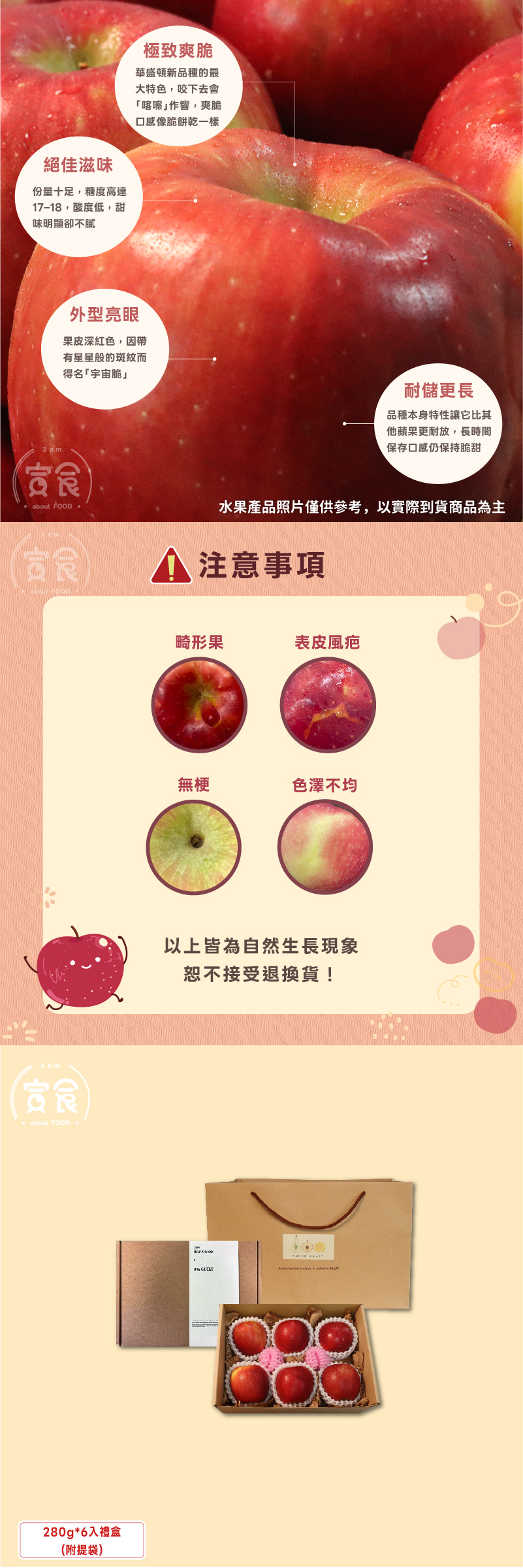 一口下去,彷彿能聽見宇宙的回音。這不是尋常的蘋果,而是一顆來自星空的果實。【冷藏/冷凍生鮮商品等易於腐敗、保存期限較短屬「通訊交易解除權合理例外情事適用準則」第2條之合理例外情事,排除消保法7日無條件解除權之適用】