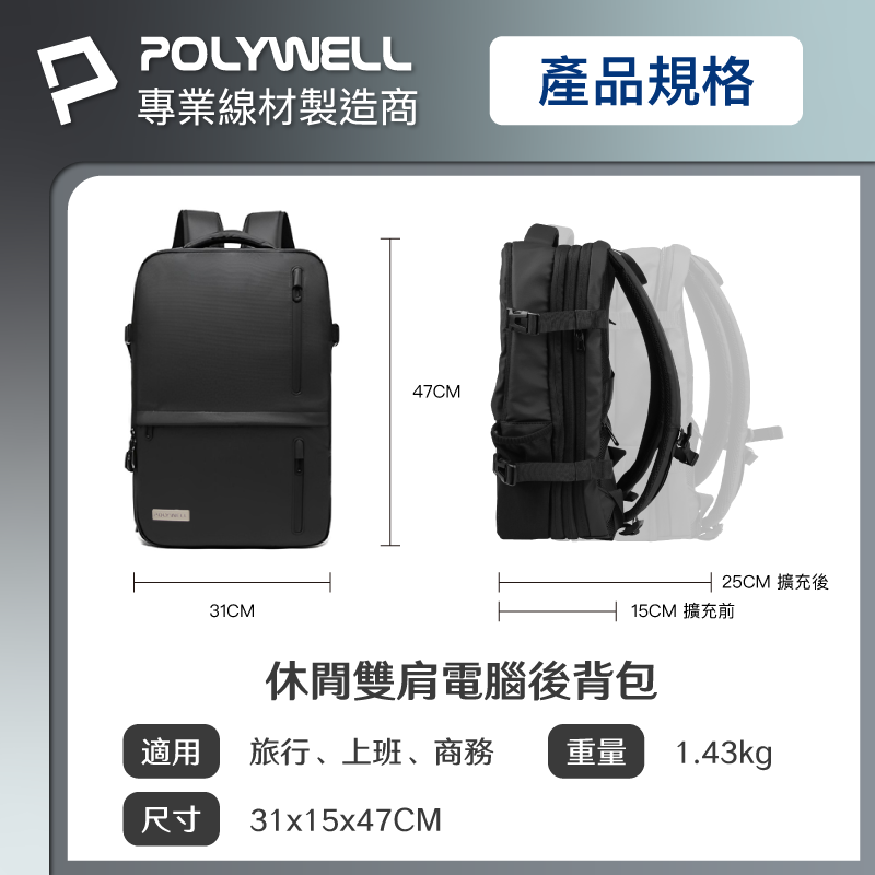 ◎ 產品: POLYWELL 多功能擴充後背包