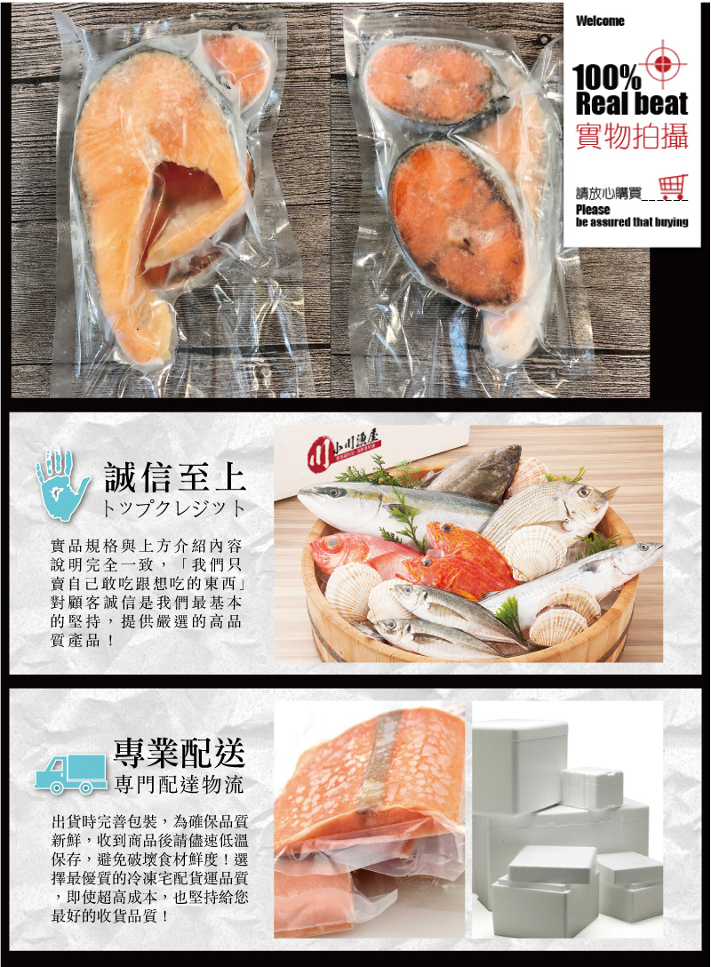 保存方式 冷凍-18℃以下食用方式 各式料理內容物成份 鮭魚熱量 可免標示每份營養成份 可免標示內容量 ( g/ml ) 300g+-10%/包食品添加物名稱 無產地(國家或台灣縣市) 智利廠商名稱 豪鮮食品廠商電話號碼 07-3650350廠商地址 高雄市大社區旗楠路88號保存期限 如包裝所示投保產品責任險字號 1300-04AKP0000486食品業者登錄字號 E-183128073-00000-4