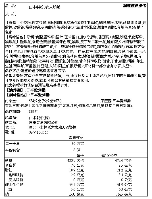 ◎Brand:山本製粉 ◎Specifications: 534g克 x 1 x 1PC包