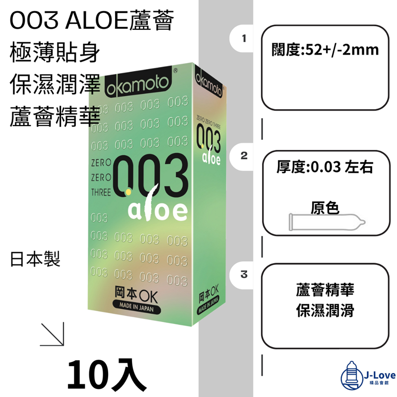 ♦︎醫療器材品名:"岡本" 衛生套 型號: 003 ALOE 闊度:52+/-2mm