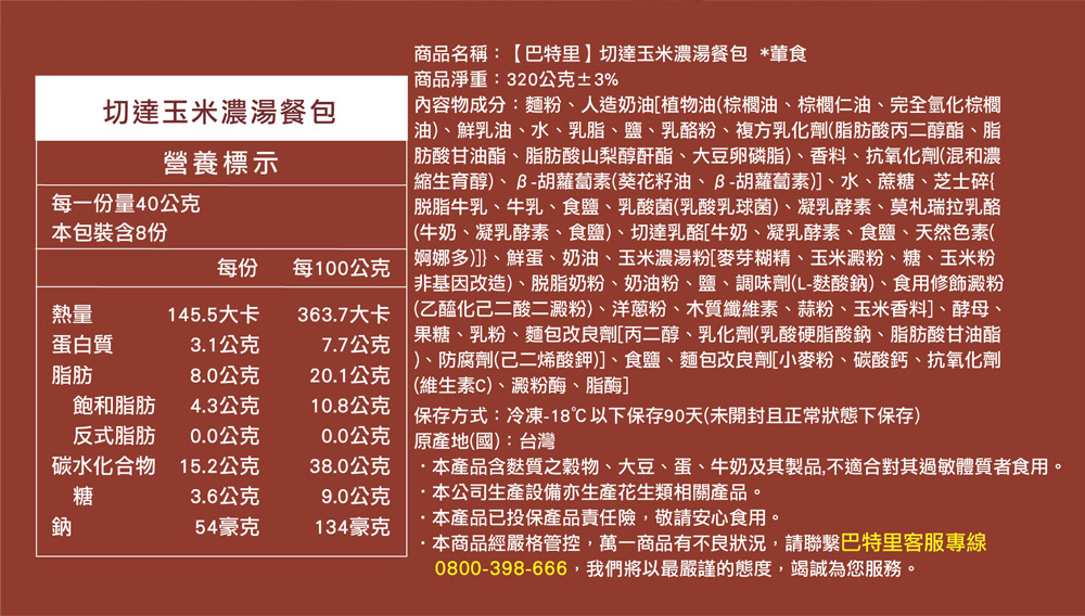 【巴特里】切達玉米濃湯餐包 2盒裝
