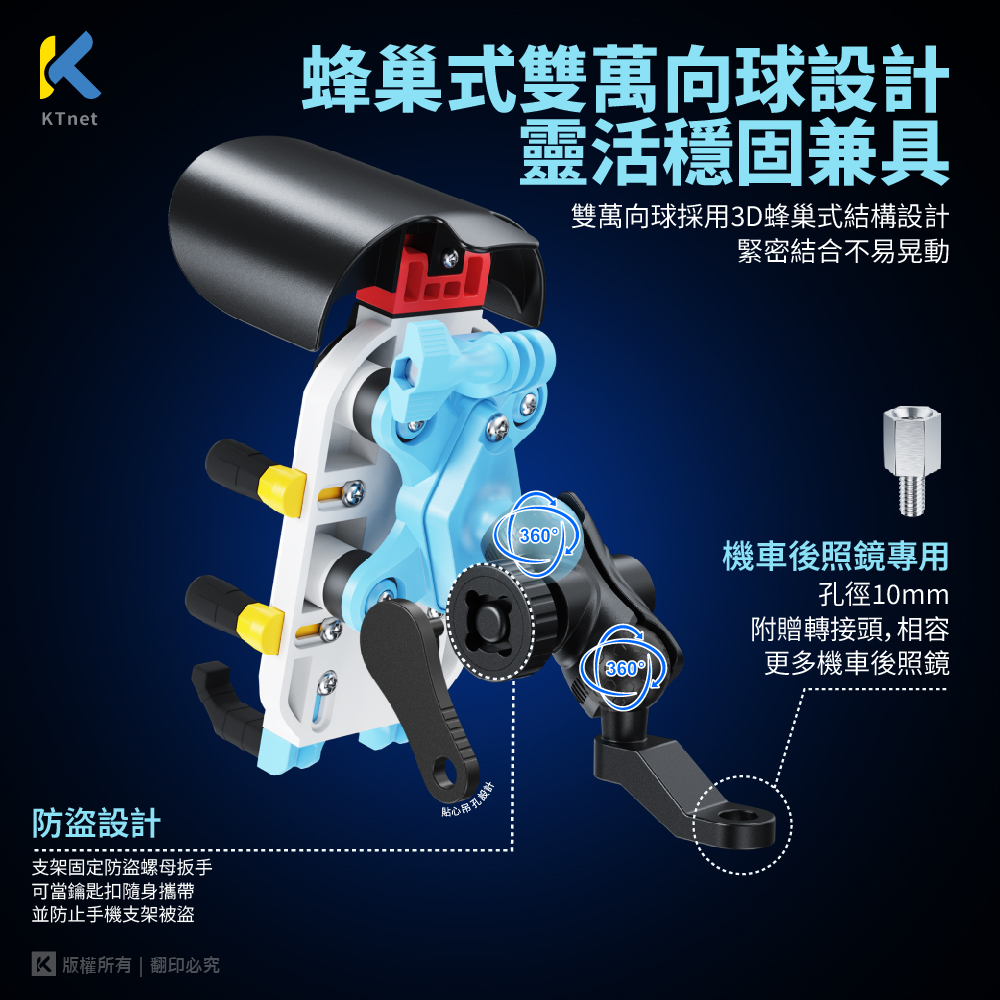 ■雙萬向球採3D蜂巢式結構設計 緊密結合不易晃動■採用無毒環保的防滑矽膠 八個鉤爪護套及手機接觸面,有效避免刮痕及磨損,防護、耐衝擊