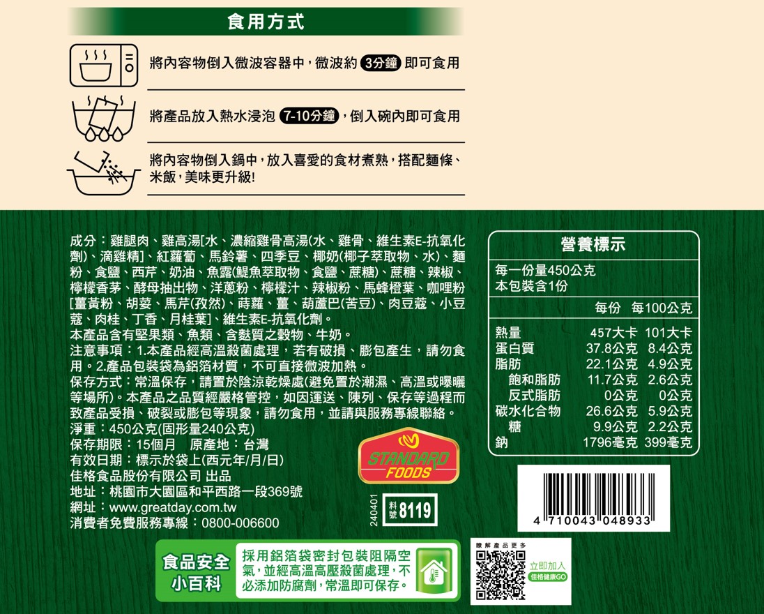 ◎Brand:得意的一天 ◎Specifications: 450g克 x 1 x 1BOX盒
