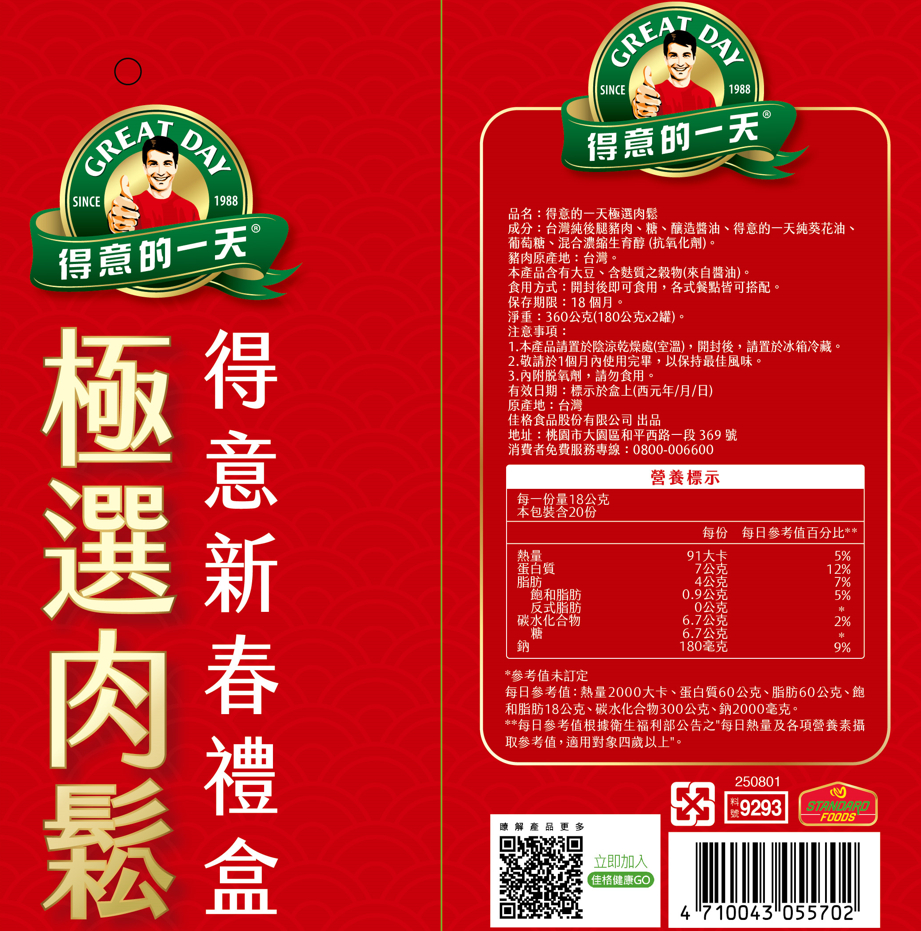 ◎Brand:得意的一天 ◎Specifications: 360g克 x 1 x 1BOX盒