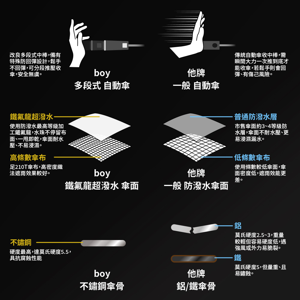 ✔️業界最高防潑水等級- Teflon✔️多段式回收機制,加倍安全✔️304不鏽鋼材質中棒,抗腐蝕、防鏽功能