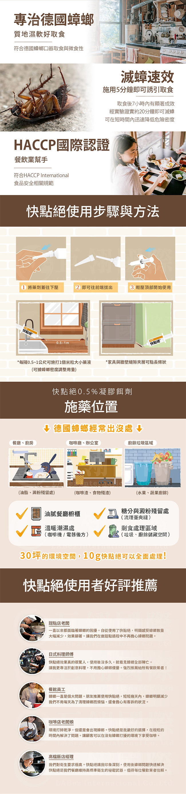 ●特別為自營餐飲業者、辦公室等室內場所打造的全新滅蟑解決方案!