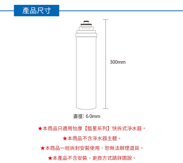 ★本商品只適用怡康【藍星系列】快拆式淨水器。