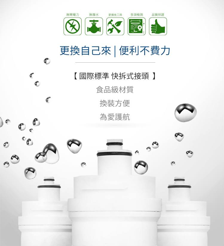 濾材一旦過水使用,即開始過濾水中各種雜質或汙染物,若超過建議更換時間未予更換,將無法確保過濾品質,嚴重將成為細菌溫床,反讓濾水系統汙染。為確保您飲水衛生安全,請定期更換濾心。