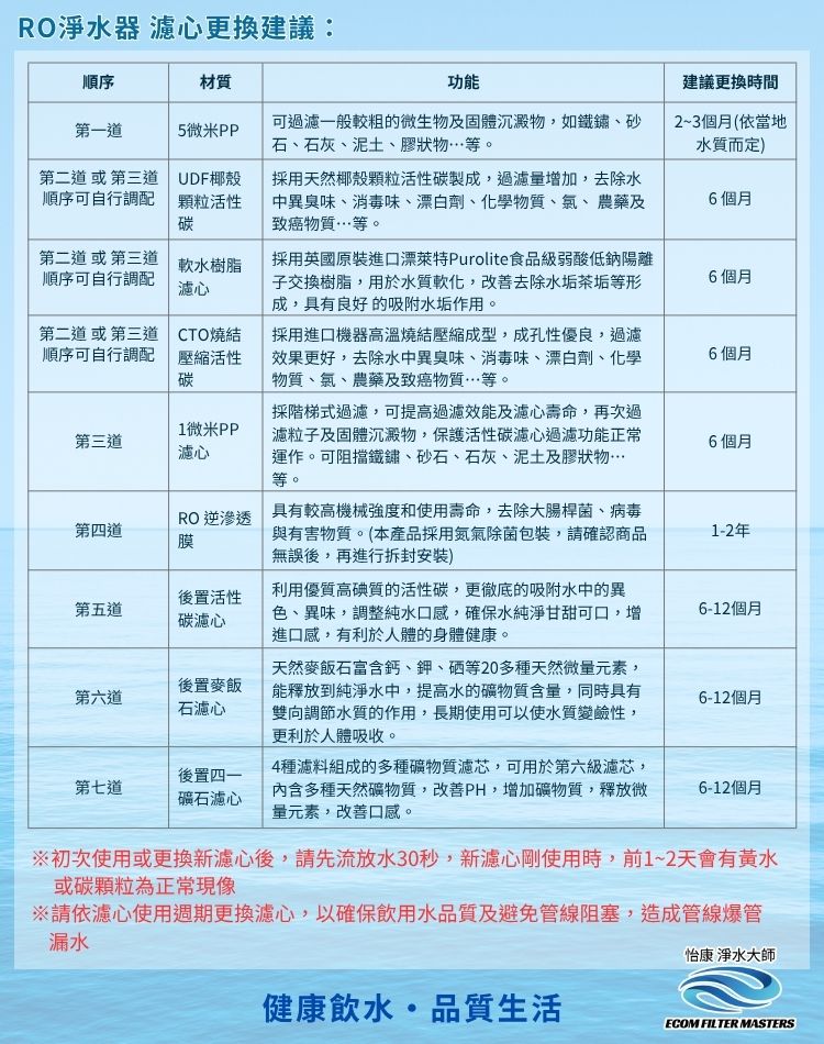 ◎濾心使用週期依正常水質地區狀況決定,但因各區域水質不同,故濾心更換頻率不同,所消耗之濾心也隨之不同,特以提醒消費者,以免造成認知上的差異!