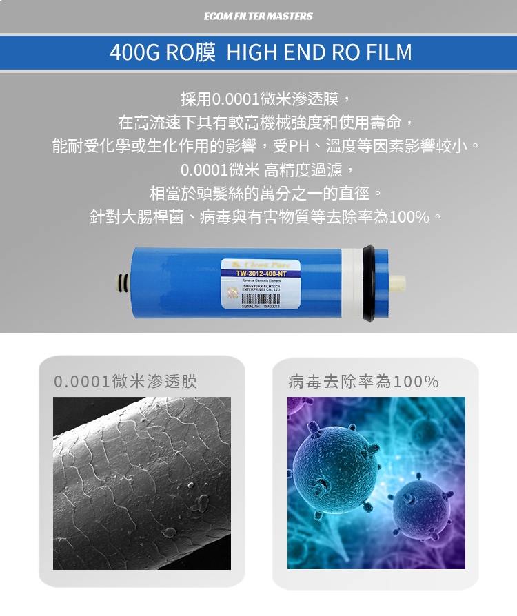 ◎RO膜採用氮氣除菌包裝,請檢查確認商品無誤後,再進行拆封安裝。