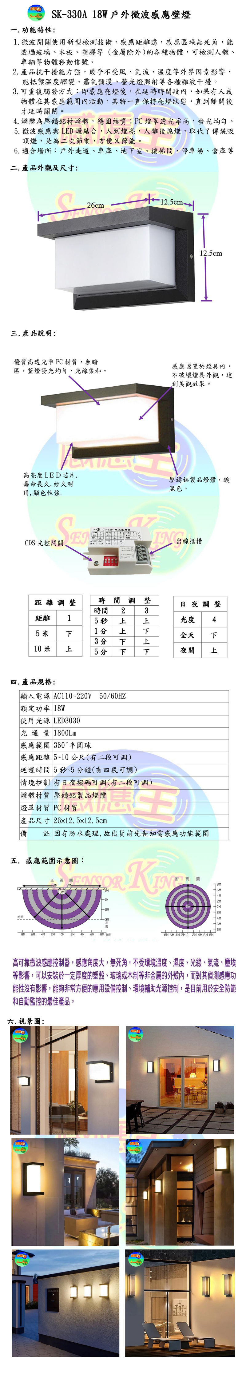 SK-330A 18W Outdoor Microwave Induction Wall Lamp (Adjustable Time, Day/Night, and Distance)