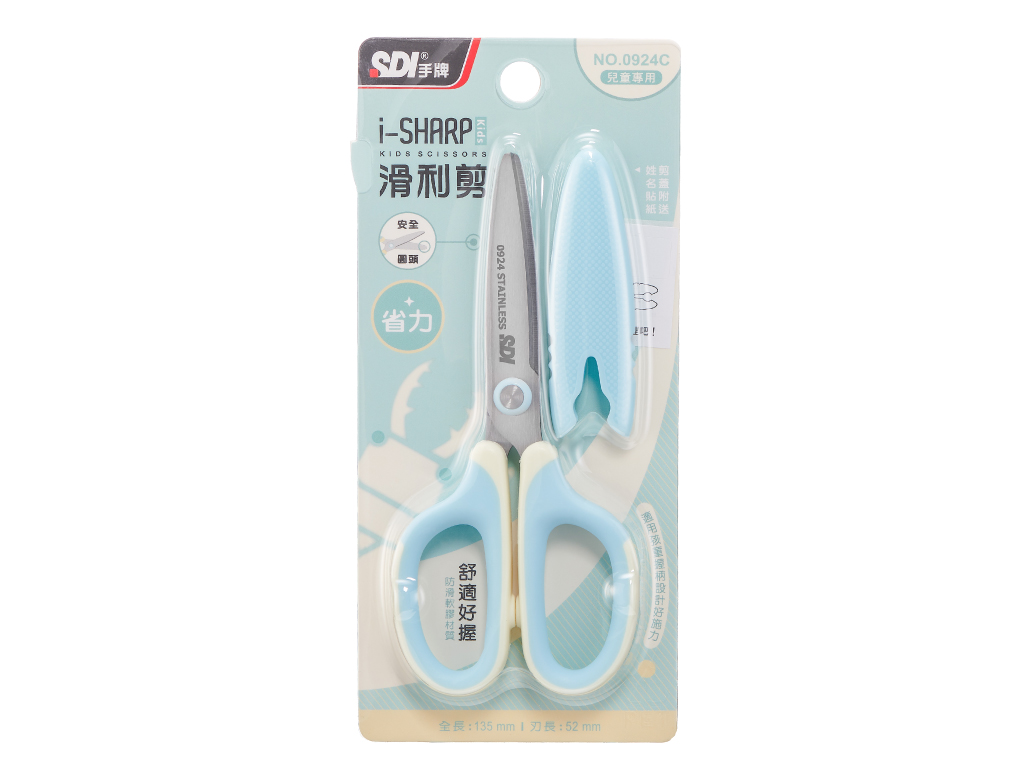 手牌SDI 5 1/4"滑利剪*省力兒童剪刀,135mm(0924C)*水藍