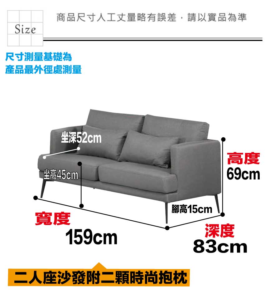 2人座尺寸:(寬)159x(深)83x(高)69/公分