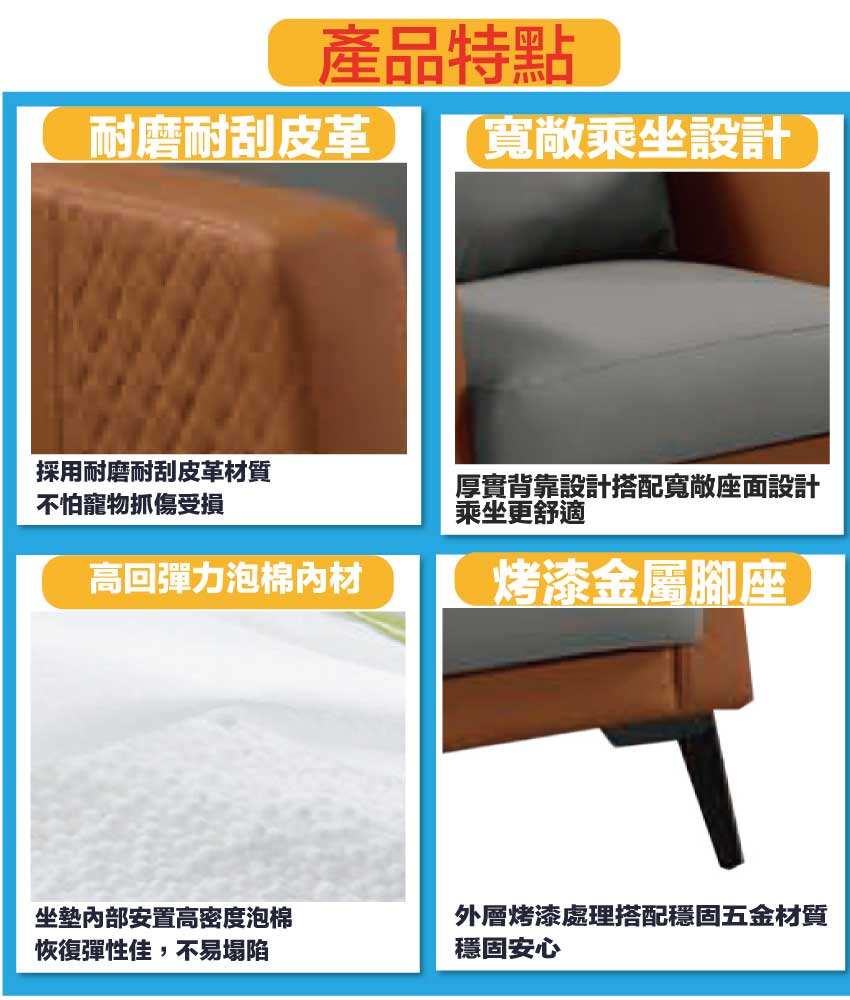 採用內部實木板材框架+烤漆金屬腳座+耐磨貓抓皮革+高回彈力加厚泡棉等安心材質製造
