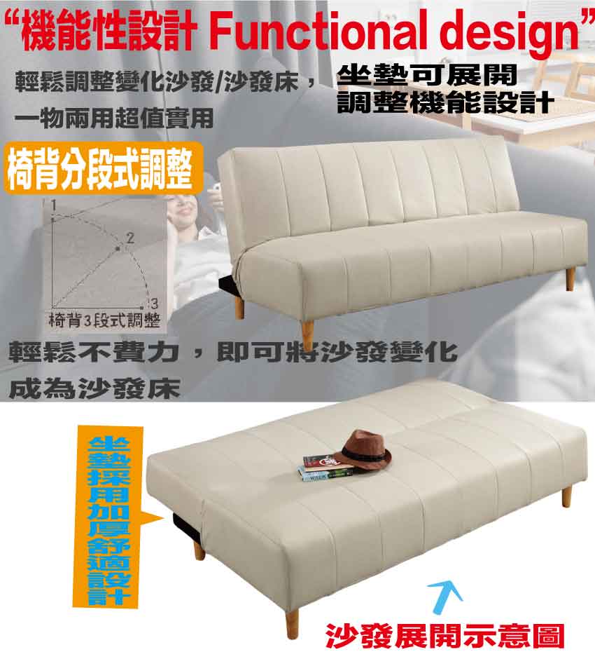 產品名稱:【文創集】柏亞加厚型科技布展開式沙發椅/沙發床(二色可選+椅背3段式可調整)